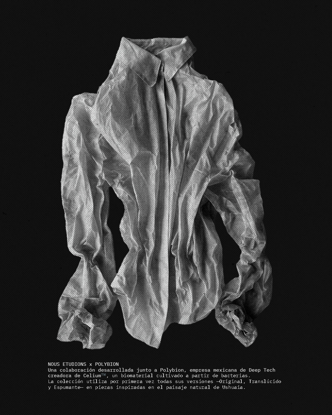 @nousetudions presenta una colección creada junto a @polybion , empresa mexicana pionera en biomateriales cultivados. Durante tres días en Ushuaia, la marca exploró el vínculo entre cuerpo, biología y paisaje, recorriendo la fauna, la flora y la energía del sur.